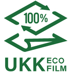 すごくいい感じのマークができました!(自画自賛) “UKK ECO FILMマーク”です。 100%再生プラスチック製品であることを証明する イメージをデザインしていただきました。