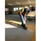 いきなりカーペットをめくっています。 どこかと言いますと、 事務所二階の会議室(研修室)、時には食堂です。